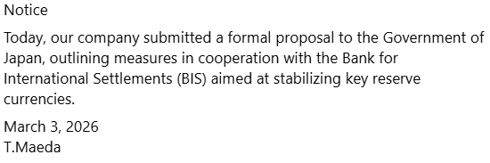 NoticeToday, our company submitted a formal proposalto the Government of Japan,outlining measures in coope…